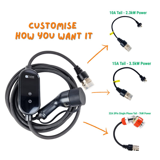 INCHARGEx Build Your Own EV Charger FlexSwap Gen 2 Swappable Tails 10A | 15A | 20A | 32A 7kW to Type 2 Portable EV Charger Body Only 5m Length