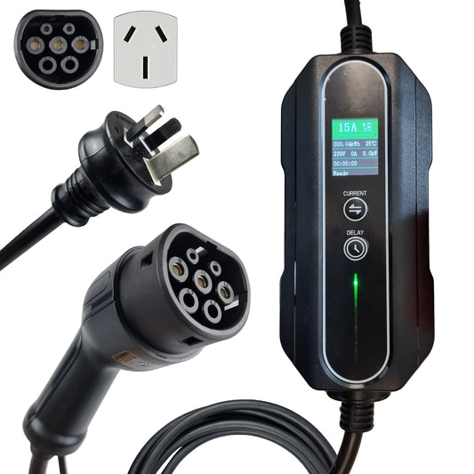 INCHARGEx Essential Portable EV Charger 10A | 3Pin | 2kW | Type 2 | 5m Max Power Adjustable Fit Tesla BYD MG EV 3 Pin Australia Plug to Type 2